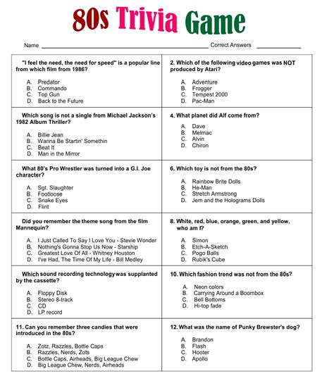 80'S Trivia Questions And Answers Printable / Many were content with the life they lived and items they had, while others were attempting to construct boats to.
